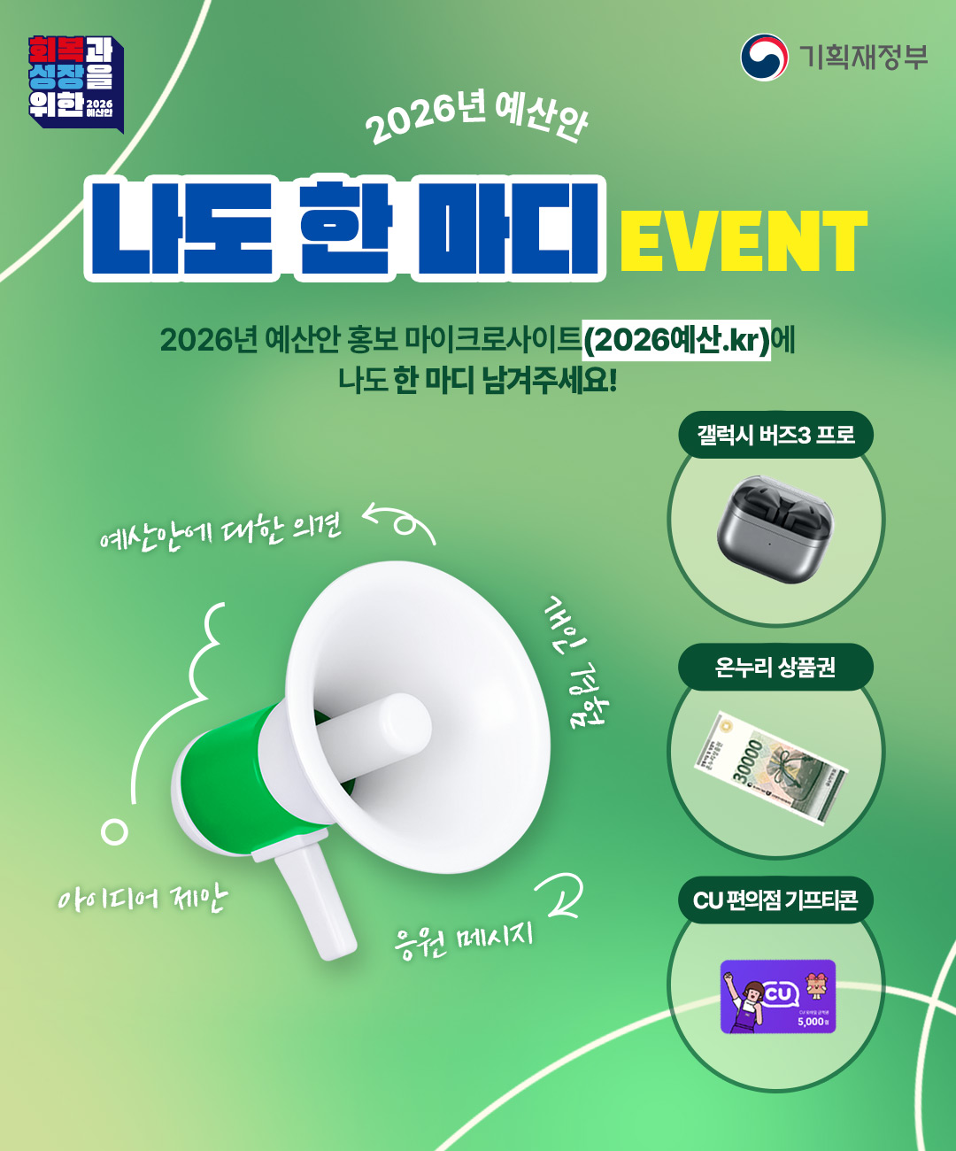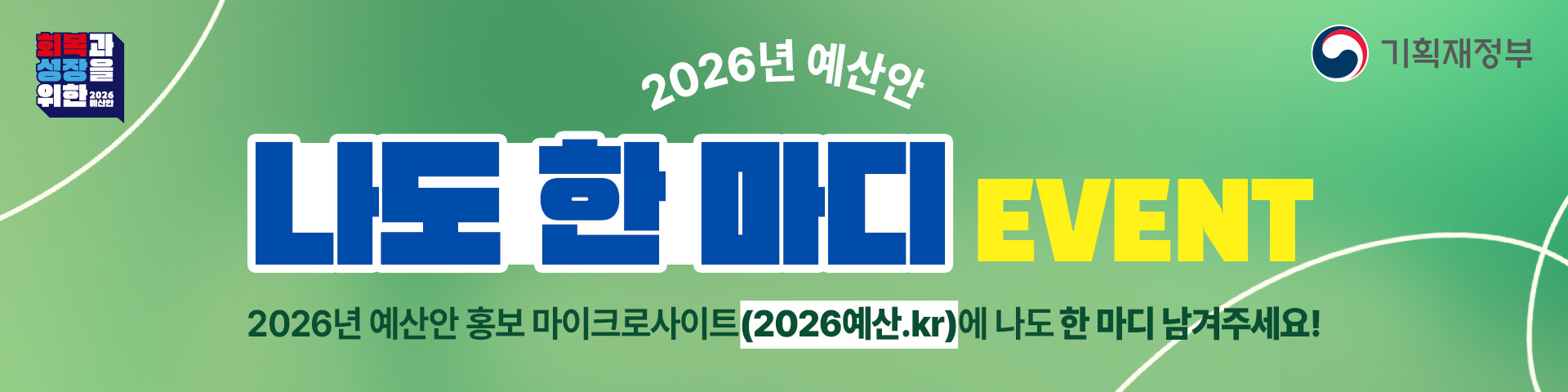 대한민국의 미래와 재정의 지속가능성을 지키는 2026 예산안! 투자를 이어나가 국민의 더 나은 삶을 함께 만들어 나가겠습니다. 확정까지 많은 관심과 응원 부탁드려요!